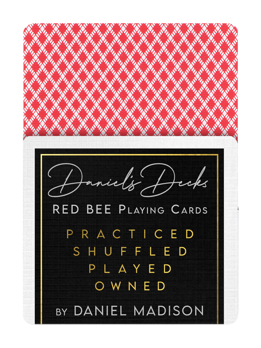 These are Daniel's RED BEES, as recently used in practice and play during the time of Madison's Marked Bikes and Bee's projects. This deck is shuffled and used in daily performance for over a week but still ready to play with, or to be kept as a collectors item - a deck directly from Madison's hands to yours, these are Daniel's RED BEES, and now they can be yours.