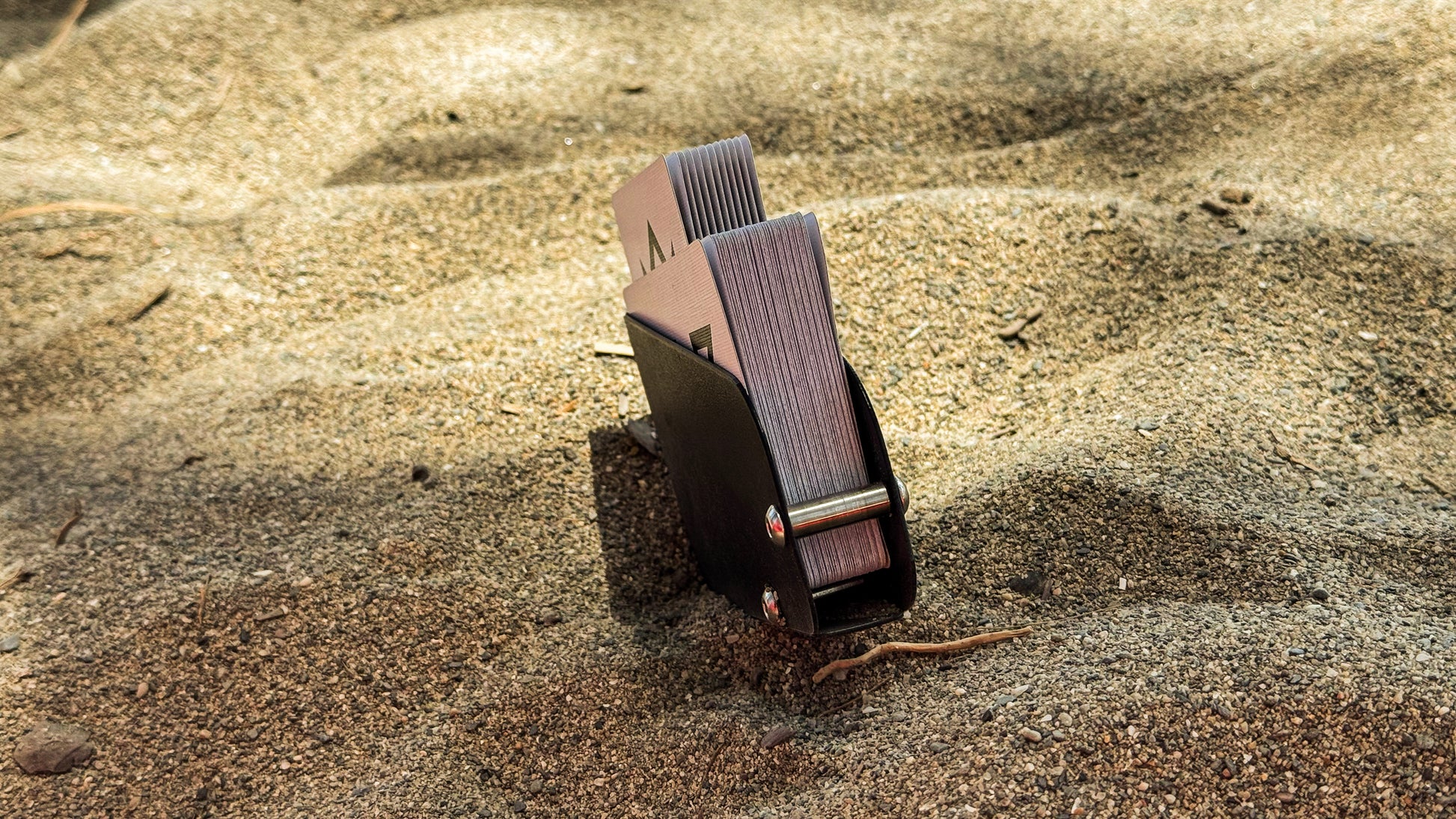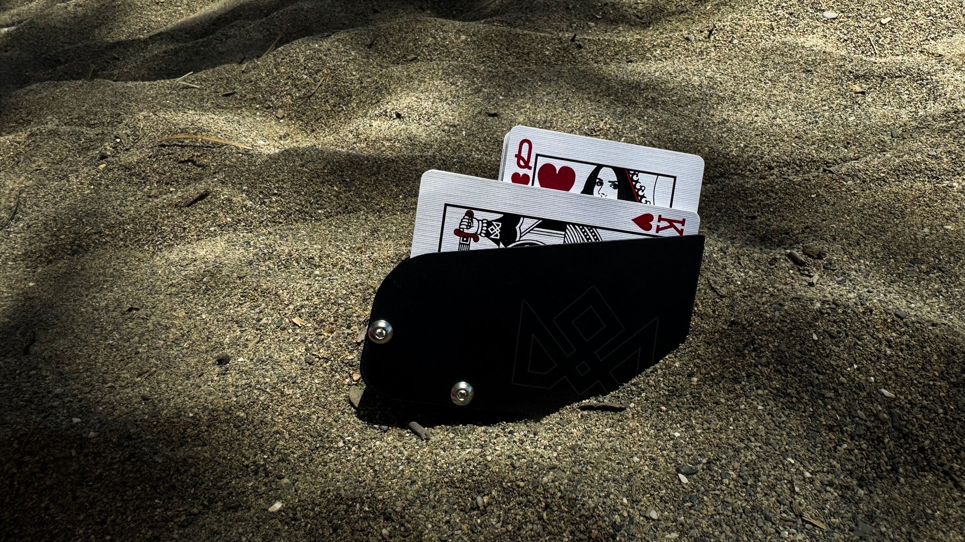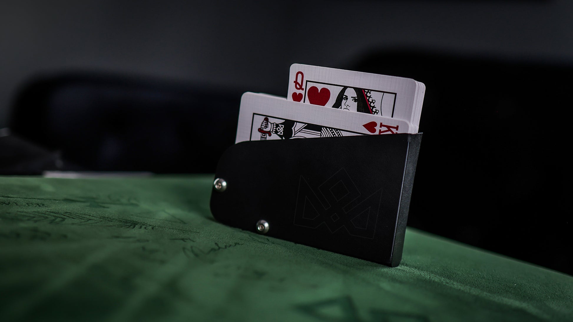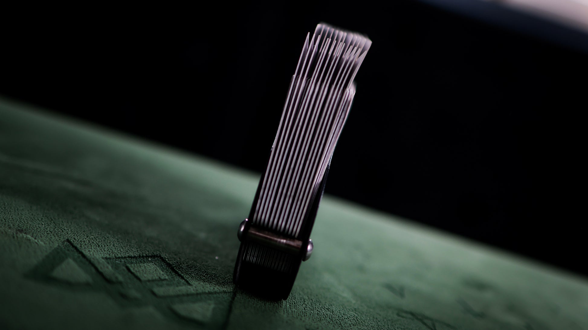 The new device by MADISON and O’HARE comes with a few revolutionary improvements that once again prove the genius of Eoin O’hare’s mechanical and precision engineering. This device acts as a holster for the deck, replacing the original torn tuck box. The deck is secured inside the black flexible device, by the design and the new features, which on first inspection appear to be simple steel bars that also hold the device together, however, these two simple bars allow for the smoothest of extrications by becoming pivot-points for the desired cards…
