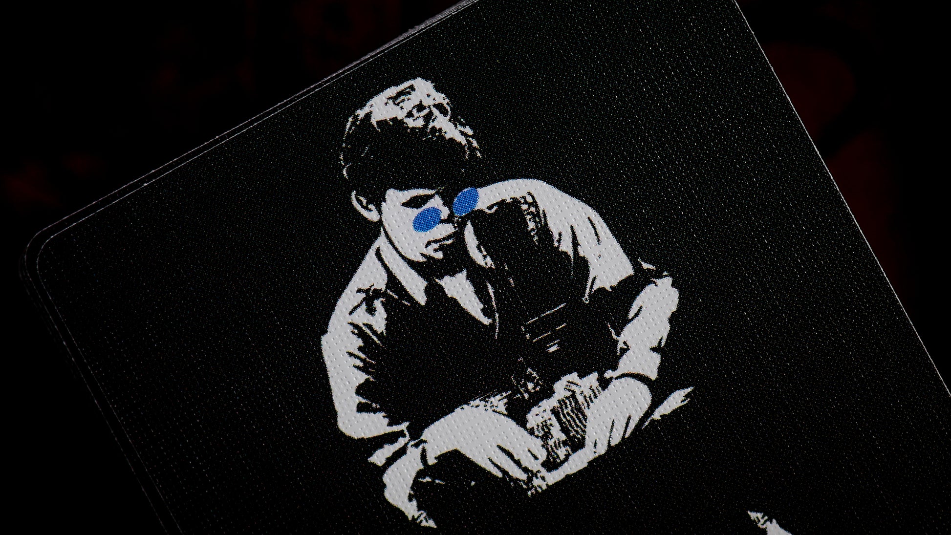 - Black-on-black aesthetic with subtle blue tones inspired by Stu’s iconic shades.